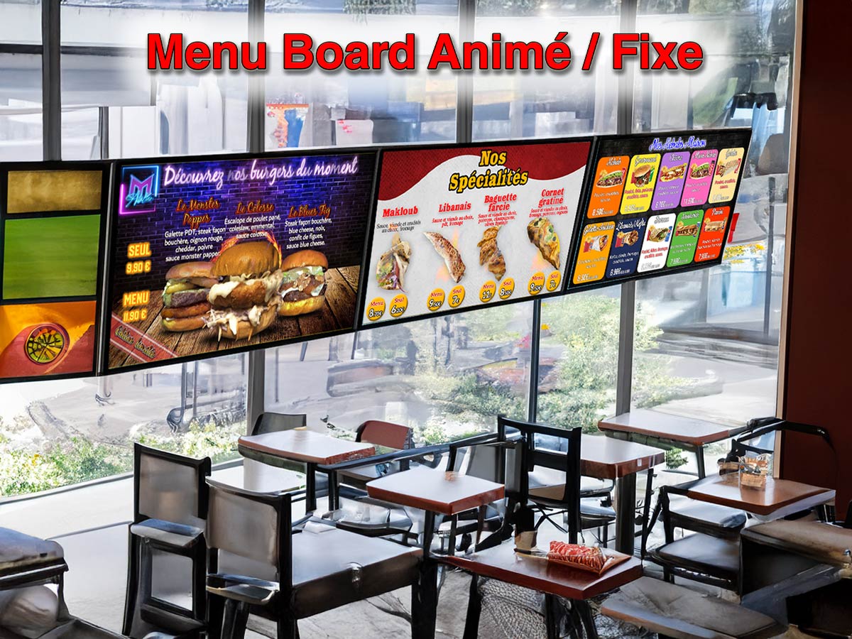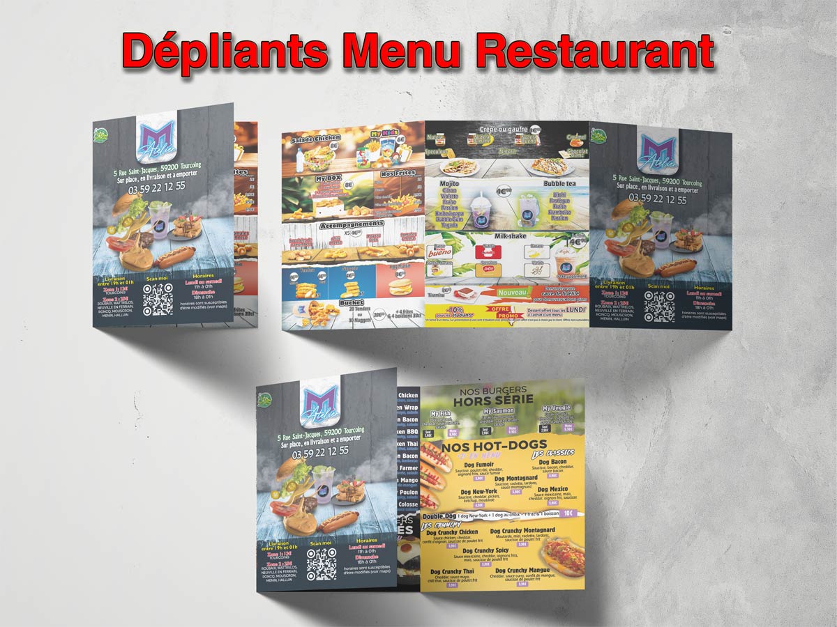 Création de menus, flyers, dépliants, panneaux publicitaires, adhésifs vitrine...et bien plus encore.